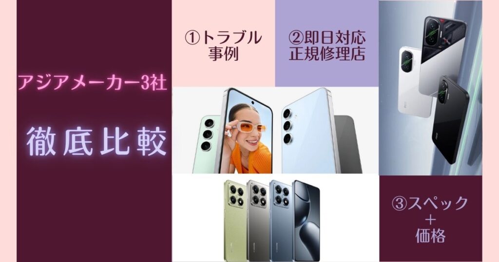 Xiaomi、OPPO、Galaxy3社をトラブル事例、正規修理店の有無、オススメミドルレンジスマホの3点から徹底比較 -